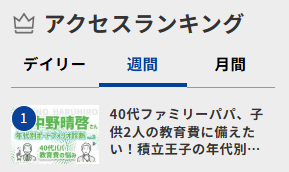 おかげさまで、本記事はデイリーアクセスランキング1位を獲得しております。