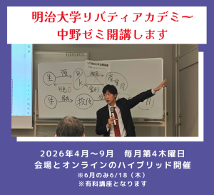 明治大学リバティアカデミーにて弊社代表中野晴啓の講座が開講されます。